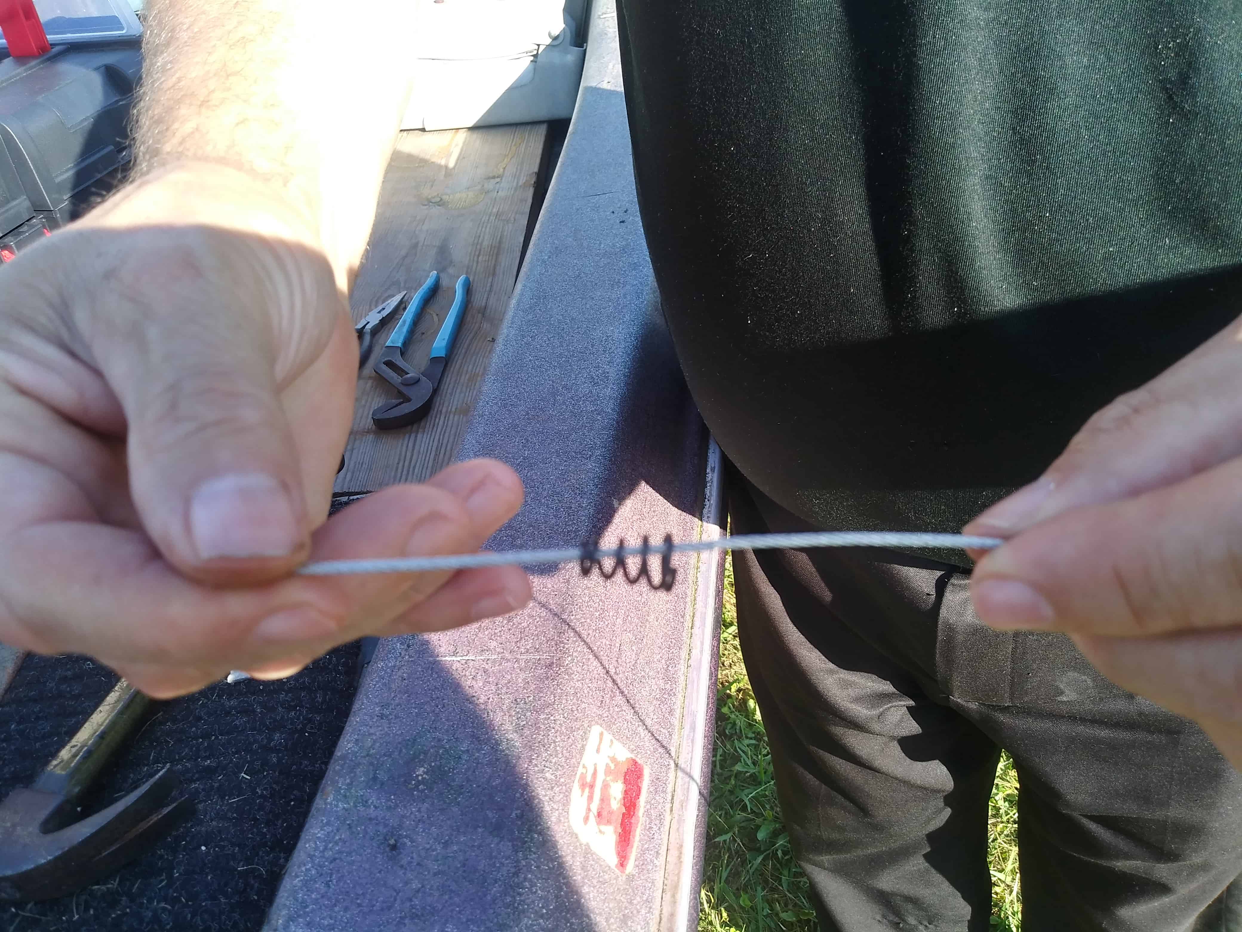 Keeping the cable in its natural lay, use a pair of needle nose pliers to grip the cable at a right or left hand (depending on rather you are right or left handed of course) “level” position.