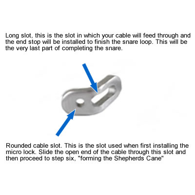Cable can tend to have a left or right curve at one end due to being wrapped on the cable spool. If you notice one end curves slightly to the left or right, then this will be the “head” of the cable or anchor point. The reason for this is that when installing the lock end, the loop will be better formed without this curve. Once you find the “head” or “anchor” end of your snare